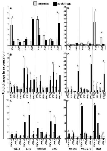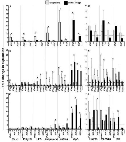 Amphibian (Xenopus laevis) Tadpoles and Adult Frogs Differ in Their Use of Expanded Repertoires of Type I and Type III Interferon Cytokines. , Wendel ES, Yaparla A, Melnyk MLS, Koubourli DV, Grayfer L ., Viruses. July 17, 2018; 10 (7):
