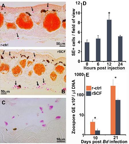 Amphibian mast cells serve as barriers to chytrid fungus infections. , Hauser KA, Garvey CN, Crow RS, Hossainey MRH, Howard DT, Ranganathan N, Gentry LK, Yaparla A, Kalia N, Zelle M, Jones EJ, Duttargi AN, Rollins-Smith LA , Muletz-Wolz CR, Grayfer L ., Elife. July 31, 2024; 12