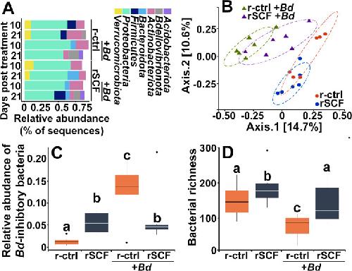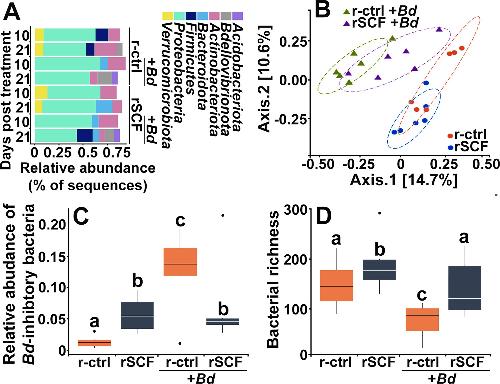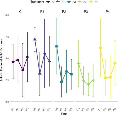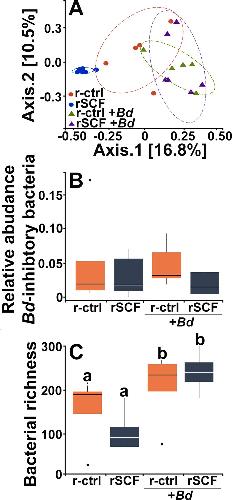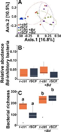 Probiotic colonization of Xenopus laevis skin causes short-term changes in skin microbiomes and gene expression. , Madison JD, Osborne OG, Ellison A, Garvey Griffith CN, Gentry L, Gross H, Gratwicke B, Grayfer L , Muletz-Wolz CR., Infect Immun. April 13, 2025; 93 (5): e0056924.