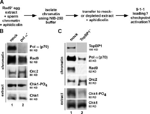 TopBP1 and DNA polymerase-alpha directly recruit the 9-1-1 complex to stalled DNA replication forks. , Yan S , Michael WM., J Cell Biol. March 23, 2009; 184 (6): 793-804.