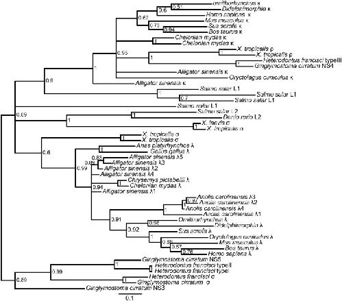 A Comprehensive Analysis of the Phylogeny, Genomic Organization and Expression of Immunoglobulin Light Chain Genes in Alligator sinensis, an Endangered Reptile Species. , Wang X , Cheng G, Lu Y, Zhang C, Wu X, Han H, Zhao Y, Ren L., PLoS One. January 1, 2016; 11 (2): e0147704.
