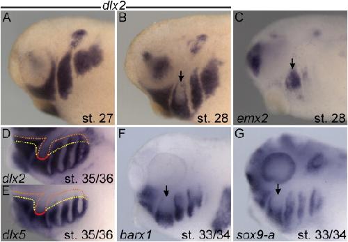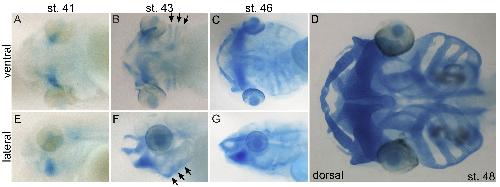 A gene expression map of the larval Xenopus laevis head reveals developmental changes underlying the evolution of new skeletal elements. , Square T , Jandzik D, Cattell M, Coe A, Doherty J, Medeiros DM ., Dev Biol. January 15, 2015; 397 (2): 293-304.