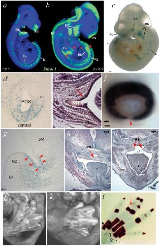 Loss of the BMP antagonist, SMOC-1, causes Ophthalmo-acromelic (Waardenburg Anophthalmia) syndrome in humans and mice., Rainger J, van Beusekom E, Ramsay JK, McKie L, Al-Gazali L, Pallotta R, Saponari A, Branney P, Fisher M, Morrison H, Bicknell L, Gautier P, Perry P, Sokhi K, Sexton D, Bardakjian TM, Schneider AS, Elcioglu N, Ozkinay F, Koenig R, Mégarbané A, Semerci CN, Khan A, Zafar S, Hennekam R, Sousa SB, Ramos L, Garavelli L, Furga AS, Wischmeijer A, Jackson IJ, Gillessen-Kaesbach G, Brunner HG, Wieczorek D, van Bokhoven H, Fitzpatrick DR., PLoS Genet. July 1, 2011; 7 (7): e1002114.