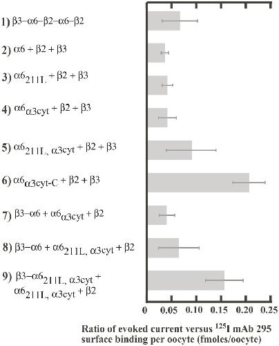 Efficient expression of functional (α6β2)2β3 AChRs in Xenopus oocytes from free subunits using slightly modified α6 subunits. , Ley CK, Kuryatov A, Wang J , Lindstrom JM., PLoS One. July 1, 2014; 9 (7): e103244.