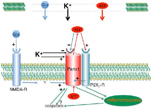 Pannexin1: a multifunction and multiconductance and/or permeability membrane channel. , Wang J , Dahl G., Am J Physiol Cell Physiol. September 1, 2018; 315 (3): C290-C299.