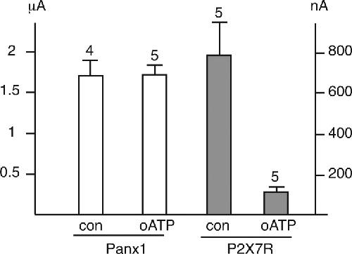 The membrane protein Pannexin1 forms two open-channel conformations depending on the mode of activation. , Wang J , Ambrosi C, Qiu F, Jackson DG, Sosinsky G, Dahl G., Sci Signal. July 22, 2014; 7 (335): ra69.