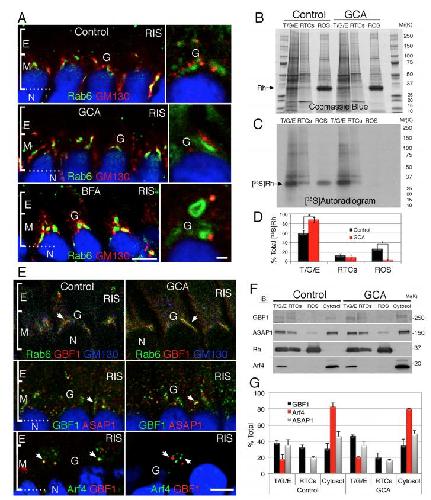 The Arf GEF GBF1 and Arf4 synergize with the sensory receptor cargo, rhodopsin, to regulate ciliary membrane trafficking. , Wang J , Fresquez T, Kandachar V, Deretic D., J Cell Sci. December 1, 2017; 130 (23): 3975-3987.