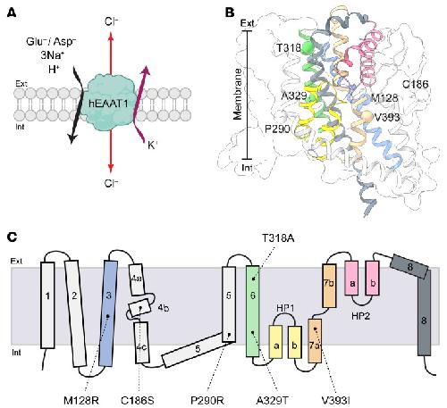 Ataxia-linked SLC1A3 mutations alter EAAT1 chloride channel activity and glial regulation of CNS function. , Wu Q , Akhter A, Pant S, Cho E, Zhu JX, Garner A, Ohyama T, Tajkhorshid E, van Meyel DJ, Ryan RM., J Clin Invest. April 1, 2022; 132 (7):