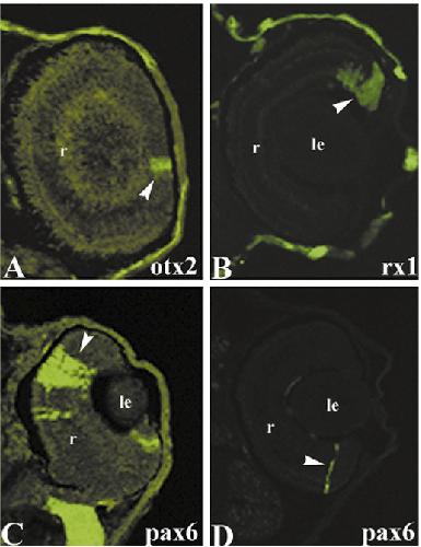 Six1 promotes a placodal fate within the lateral neurogenic ectoderm by functioning as both a transcriptional activator and repressor. , Brugmann SA , Pandur PD , Kenyon KL , Pignoni F, Moody SA ., Development. December 1, 2004; 131 (23): 5871-81.