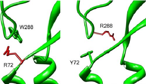 Interaction of the aromatics Tyr-72/Trp-288 in the interface of the extracellular and transmembrane domains is essential for proton gating of acid-sensing ion channels. , Li T , Yang Y , Canessa CM., J Biol Chem. February 13, 2009; 284 (7): 4689-94.