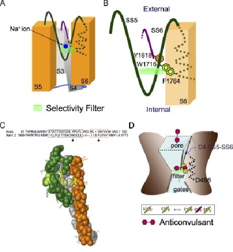 The external pore loop interacts with S6 and S3-S4 linker in domain 4 to assume an essential role in gating control and anticonvulsant action in the Na(+) channel. , Yang YC , Hsieh JY, Kuo CC., J Gen Physiol. August 1, 2009; 134 (2): 95-113.