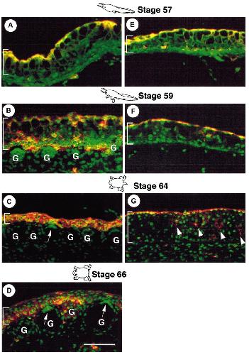 Loss of reactivity to pan-cadherin antibody in epidermal cells as a marker for metamorphic alteration of Xenopus skin. , Izutsu Y , Tochinai S, Onoé K., Dev Growth Differ. August 1, 2000; 42 (4): 377-83.