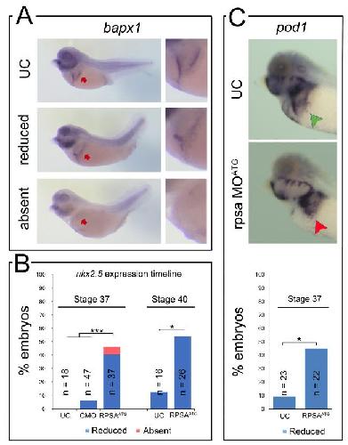 RPSA, a candidate gene for isolated congenital asplenia, is required for pre-rRNA processing and spleen formation in Xenopus., Griffin JN, Sondalle SB, Robson A, Mis EK, Griffin G, Kulkarni SS, Deniz E, Baserga SJ, Khokha MK., Development. October 18, 2018; 145 (20): |