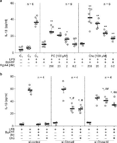 Phosphocholine - an agonist of metabotropic but not of ionotropic functions of α9-containing nicotinic acetylcholine receptors., Richter K, Mathes V, Fronius M, Althaus M, Hecker A, Krasteva-Christ G, Padberg W, Hone AJ, McIntosh JM, Zakrzewicz A, Grau V., Sci Rep. June 28, 2016; 6 28660. |