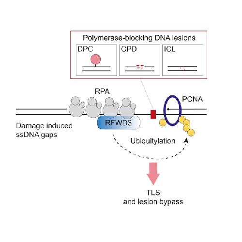 The ubiquitin ligase RFWD3 is required for translesion DNA synthesis., Gallina I, Hendriks IA, Hoffmann S, Larsen NB, Johansen J, Colding-Christensen CS, Schubert L, Sellés-Baiget S, Fábián Z, Kühbacher U, Gao AO, Räschle M, Rasmussen S, Nielsen ML, Mailand N, Duxin JP., Mol Cell. February 4, 2021; 81 (3): 442-458.e9.