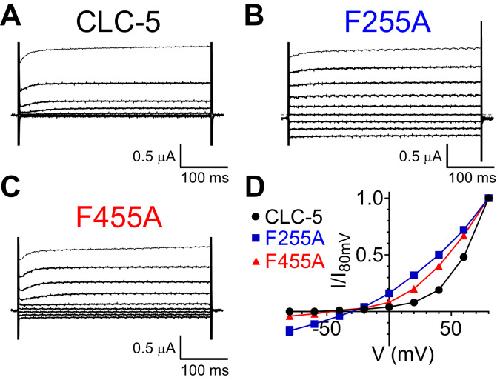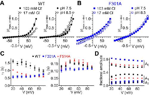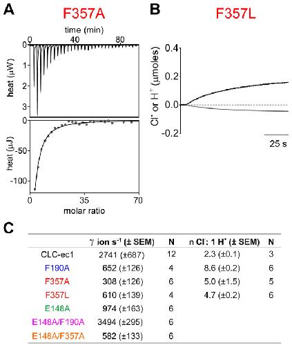 Divergent Cl- and H+ pathways underlie transport coupling and gating in CLC exchangers and channels., Leisle L, Xu Y, Fortea E, Lee S, Galpin JD, Vien M, Ahern CA, Accardi A, Bernèche S., Elife. April 28, 2020; 9