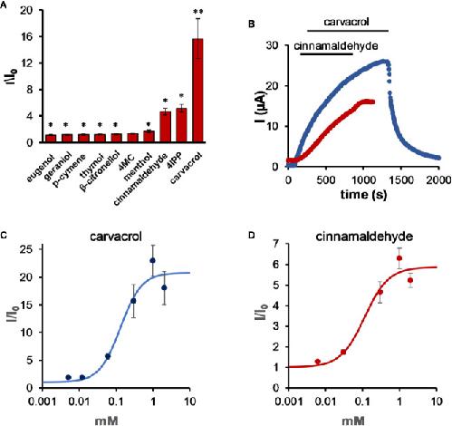 Monoterpenes Differently Regulate Acid-Sensitive and Mechano-Gated K2P Channels. , Arazi E, Blecher G, Zilberberg N ., Front Pharmacol. January 1, 2020; 11 704.
