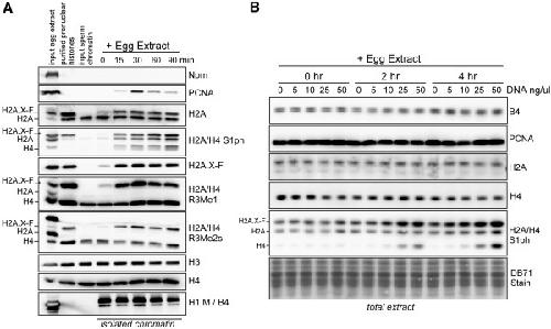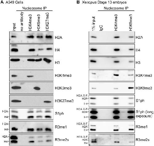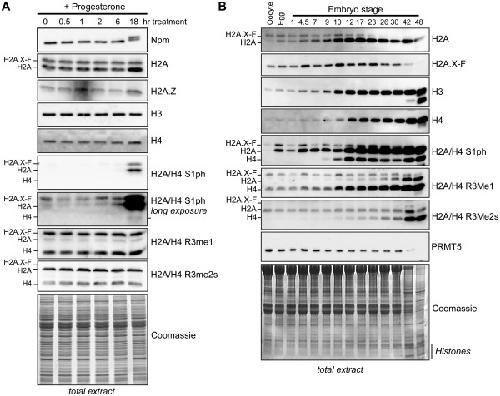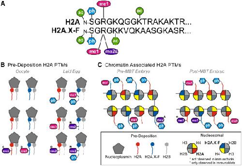 Phosphorylation and arginine methylation mark histone H2A prior to deposition during Xenopus laevis development., Wang WL, Anderson LC, Nicklay JJ, Chen H, Gamble MJ, Shabanowitz J, Hunt DF, Shechter D., Epigenetics Chromatin. September 6, 2014; 7 22. |