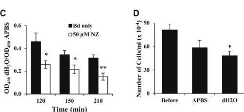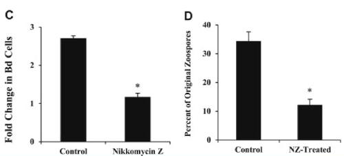 Nikkomycin Z is an effective inhibitor of the chytrid fungus linked to global amphibian declines. , Holden WM, Fites JS, Reinert LK, Rollins-Smith LA ., Fungal Biol. January 1, 2014; 118 (1): 48-60.