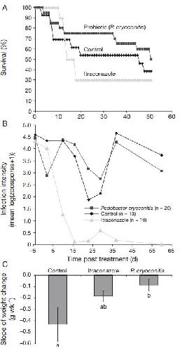 Treatment of amphibians infected with chytrid fungus: learning from failed trials with itraconazole, antimicrobial peptides, bacteria, and heat therapy. , Woodhams DC, Geiger CC, Reinert LK, Rollins-Smith LA , Lam B, Harris RN, Briggs CJ, Vredenburg VT, Voyles J., Dis Aquat Organ. February 17, 2012; 98 (1): 11-25.