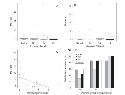 Evaluation of amphotericin B and chloramphenicol as alternative drugs for treatment of chytridiomycosis and their impacts on innate skin defenses. , Holden WM, Ebert AR, Canning PF, Rollins-Smith LA ., Appl Environ Microbiol. July 1, 2014; 80 (13): 4034-41.