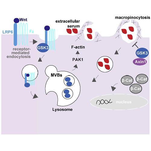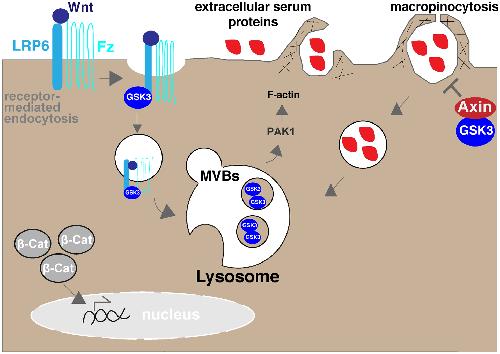 GSK3 Inhibits Macropinocytosis and Lysosomal Activity through the Wnt Destruction Complex Machinery. , Albrecht LV, Tejeda-Muñoz N , Bui MH, Cicchetto AC, Di Biagio D, Colozza G , Schmid E, Piccolo S , Christofk HR, De Robertis EM ., Cell Rep. July 28, 2020; 32 (4): 107973.
