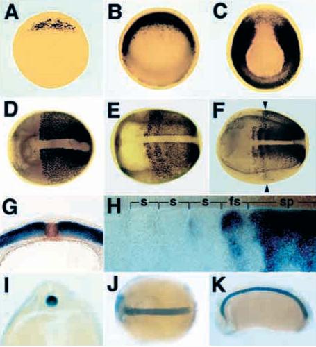 Patterning by genes expressed in Spemann''s organizer. , De Robertis EM , Kim S, Leyns L, Piccolo S , Bachiller D, Agius E , Belo JA , Yamamoto A, Hainski-Brousseau A, Brizuela B, Wessely O , Lu B , Bouwmeester T., Cold Spring Harb Symp Quant Biol. January 1, 1997; 62 169-75.
