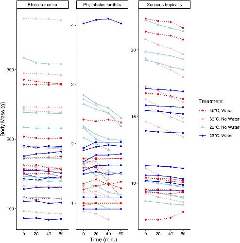 Water Availability and Temperature as Modifiers of Evaporative Water Loss in Tropical Frogs., Juarez BH, Quintanilla-Salinas I, Lacey MP, O'Connell LA., Integr Comp Biol. September 17, 2024; 64 (2): 354-365. |