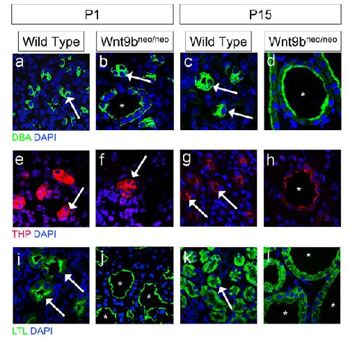 Wnt9b signaling regulates planar cell polarity and kidney tubule morphogenesis. , Karner CM, Chirumamilla R, Aoki S, Igarashi P, Wallingford JB , Carroll TJ ., Nat Genet. July 1, 2009; 41 (7): 793-9.