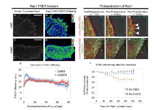 A mechanoresponsive cadherin-keratin complex directs polarized protrusive behavior and collective cell migration., Weber GF, Bjerke MA, DeSimone DW., Dev Cell. January 17, 2012; 22 (1): 104-15.