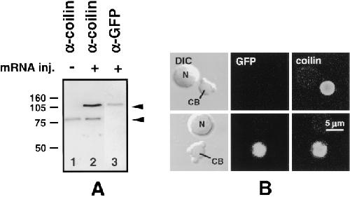 Coilin shuttles between the nucleus and cytoplasm in Xenopus oocytes., Bellini M, Gall JG., Mol Biol Cell. October 1, 1999; 10 (10): 3425-34.