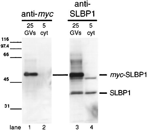 The stem-loop binding protein (SLBP1) is present in coiled bodies of the Xenopus germinal vesicle., Abbott J, Marzluff WF, Gall JG., Mol Biol Cell. February 1, 1999; 10 (2): 487-99.