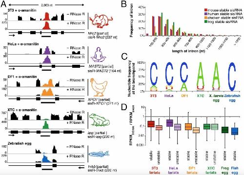 Stable intronic sequence RNA (sisRNA), a new class of noncoding RNA from the oocyte nucleus of Xenopus tropicalis., Gardner EJ, Nizami ZF, Talbot CC, Gall JG., Genes Dev. November 15, 2012; 26 (22): 2550-9.