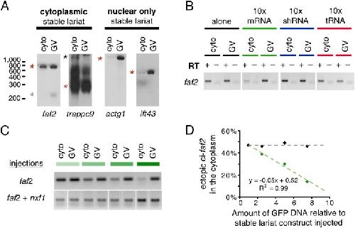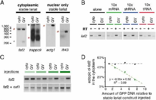 Lariat intronic RNAs in the cytoplasm of Xenopus tropicalis oocytes., Talhouarne GJ, Gall JG., RNA. September 1, 2014; 20 (9): 1476-87.