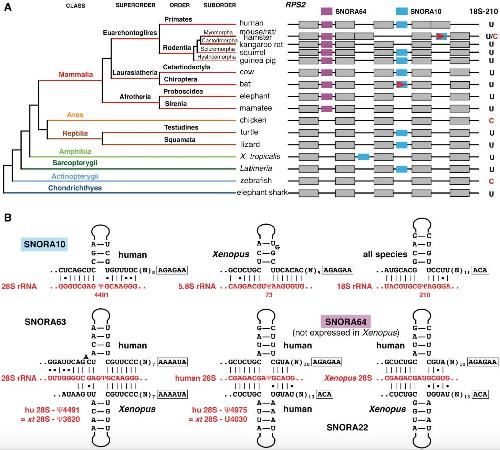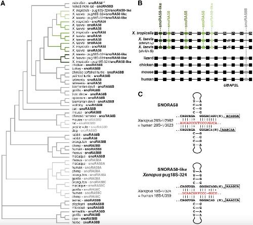 "Lost and Found": snoRNA Annotation in the Xenopus Genome and Implications for Evolutionary Studies., Deryusheva S, Talhouarne GJS, Gall JG., Mol Biol Evol. January 1, 2020; 37 (1): 149-166.