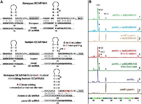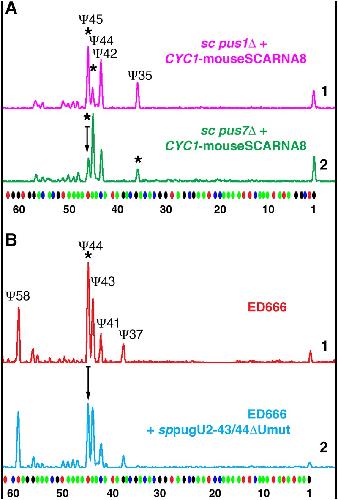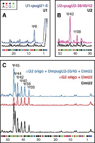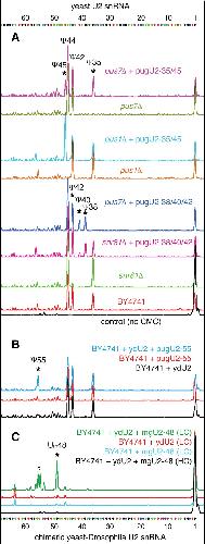 Dual nature of pseudouridylation in U2 snRNA: Pus1p-dependent and Pus1p-independent activities in yeasts and higher eukaryotes., Deryusheva S, Gall JG., RNA. July 1, 2017; 23 (7): 1060-1067.