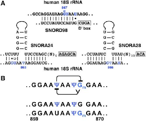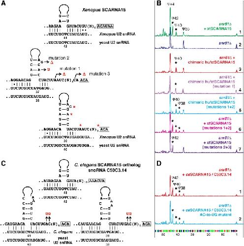 Orchestrated positioning of post-transcriptional modifications at the branch point recognition region of U2 snRNA., Deryusheva S, Gall JG., RNA. January 1, 2018; 24 (1): 30-42.