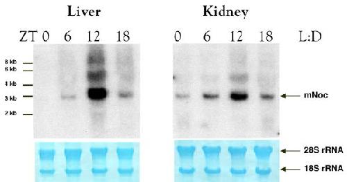 Rhythmic expression of Nocturnin mRNA in multiple tissues of the mouse. , Wang Y, Osterbur DL, Megaw PL, Tosini G, Fukuhara C, Green CB , Besharse JC ., BMC Dev Biol. January 1, 2001; 1 9.