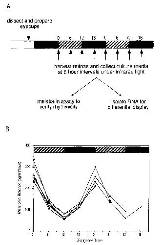 Use of a high stringency differential display screen for identification of retinal mRNAs that are regulated by a circadian clock. , Green CB , Besharse JC ., Brain Res Mol Brain Res. April 1, 1996; 37 (1-2): 157-65.