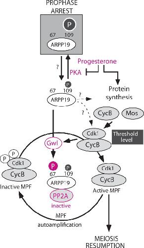 Phosphorylation of ARPP19 by protein kinase A prevents meiosis resumption in Xenopus oocytes. , Dupré A , Daldello EM, Nairn AC, Jessus C , Haccard O ., Nat Commun. January 1, 2014; 5 3318.