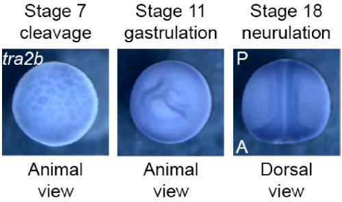 The alternative splicing regulator Tra2b is required for somitogenesis and regulates splicing of an inhibitory Wnt11b isoform. , Dichmann DS , Walentek P , Harland RM ., Cell Rep. February 3, 2015; 10 (4): 527-36.