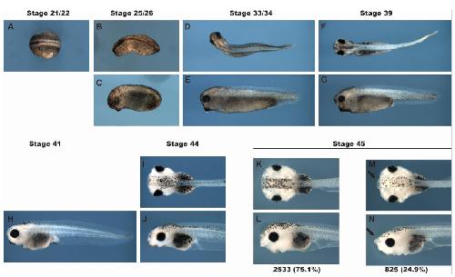 The genome of the Western clawed frog Xenopus tropicalis. , Hellsten U, Harland RM , Gilchrist MJ , Hendrix D, Jurka J, Kapitonov V, Ovcharenko I, Putnam NH, Shu S, Taher L, Blitz IL , Blumberg B , Dichmann DS , Dubchak I, Amaya E , Detter JC, Fletcher R, Gerhard DS, Goodstein D, Graves T, Grigoriev IV, Grimwood J, Kawashima T, Lindquist E, Lucas SM, Mead PE , Mitros T, Ogino H , Ohta Y, Poliakov AV, Pollet N , Robert J , Salamov A, Sater AK , Schmutz J, Terry A , Vize PD , Warren WC, Wells D, Wills A , Wilson RK, Zimmerman LB , Zorn AM , Grainger R , Grammer T , Khokha MK , Richardson PM , Rokhsar DS ., Science. April 30, 2010; 328 (5978): 633-6.