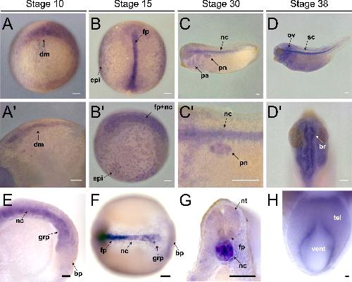A molecular atlas of the developing ectoderm defines neural, neural crest, placode, and nonneural progenitor identity in vertebrates. , Plouhinec JL, Medina-Ruiz S, Borday C, Bernard E, Vert JP, Eisen MB, Harland RM , Monsoro-Burq AH ., PLoS Biol. October 19, 2017; 15 (10): e2004045.