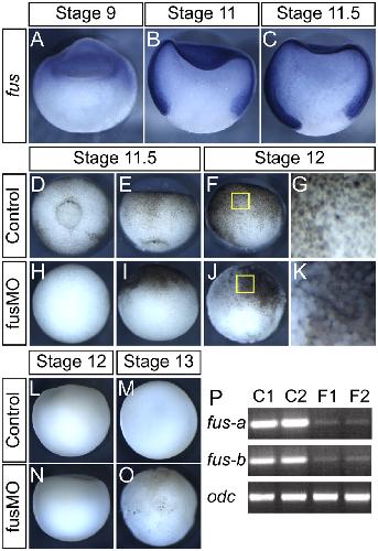 fus/TLS orchestrates splicing of developmental regulators during gastrulation. , Dichmann DS , Harland RM ., Genes Dev. June 15, 2012; 26 (12): 1351-63.