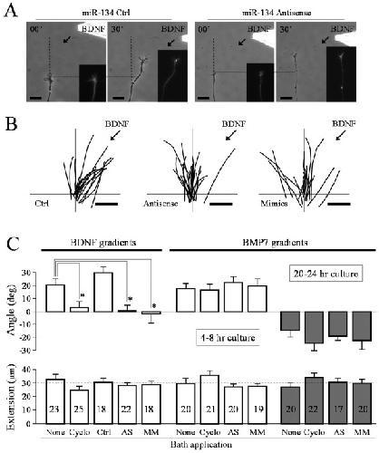 Regulation of chemotropic guidance of nerve growth cones by microRNA., Han L, Wen Z, Lynn RC, Baudet ML, Holt CE, Sasaki Y, Bassell GJ, Zheng JQ., Mol Brain. November 3, 2011; 4 40. |