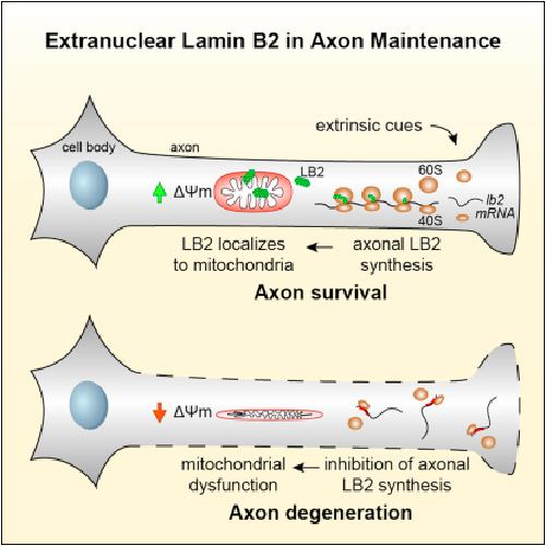 Local translation of extranuclear lamin B promotes axon maintenance., Yoon BC, Jung H, Dwivedy A, O'Hare CM, Zivraj KH, Holt CE., Cell. February 17, 2012; 148 (4): 752-64. |