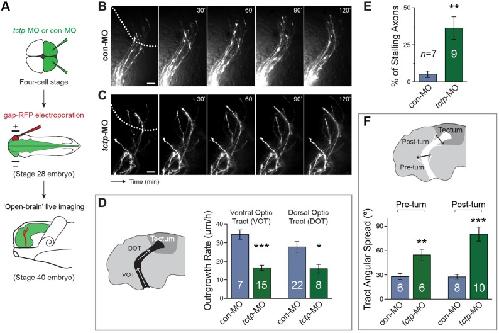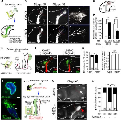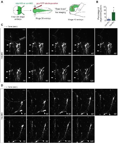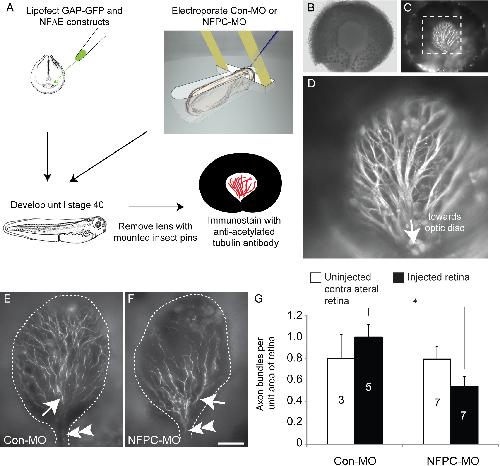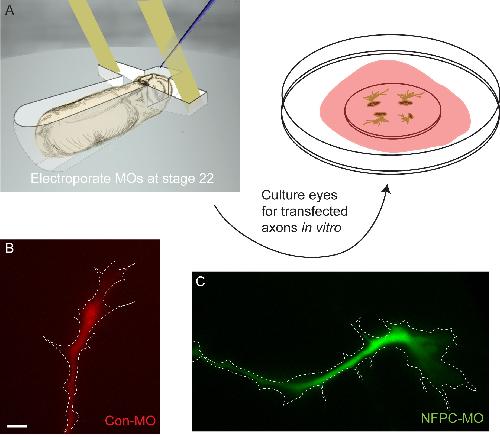 Electroporation of cDNA/Morpholinos to targeted areas of embryonic CNS in Xenopus., Falk J, Drinjakovic J, Leung KM, Dwivedy A, Regan AG, Piper M, Holt CE., BMC Dev Biol. September 27, 2007; 7 107. |