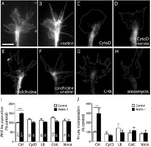 Differential requirement of F-actin and microtubule cytoskeleton in cue-induced local protein synthesis in axonal growth cones., Piper M, Lee AC, van Horck FP, McNeilly H, Lu TB, Harris WA, Holt CE., Neural Dev. February 25, 2015; 10 3. |