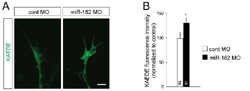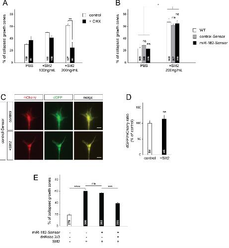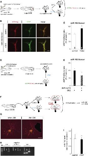 miR-182 Regulates Slit2-Mediated Axon Guidance by Modulating the Local Translation of a Specific mRNA., Bellon A, Iyer A, Bridi S, Lee FCY, Ovando-Vázquez C, Corradi E, Longhi S, Roccuzzo M, Strohbuecker S, Naik S, Sarkies P, Miska E, Abreu-Goodger C, Holt CE, Baudet ML., Cell Rep. January 31, 2017; 18 (5): 1171-1186. |