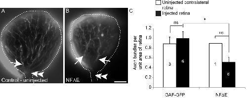 NF-protocadherin and TAF1 regulate retinal axon initiation and elongation in vivo., Piper M, Dwivedy A, Leung L, Bradley RS, Holt CE., J Neurosci. January 2, 2008; 28 (1): 100-5. |